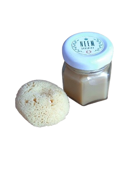 El kit de anticoncepción natural viene con una esponja marina para su colocación y el aceite de Neem medicinal de primera prensa, - que no es el aceite de uso agrícola que se comecializa para las plantas-.